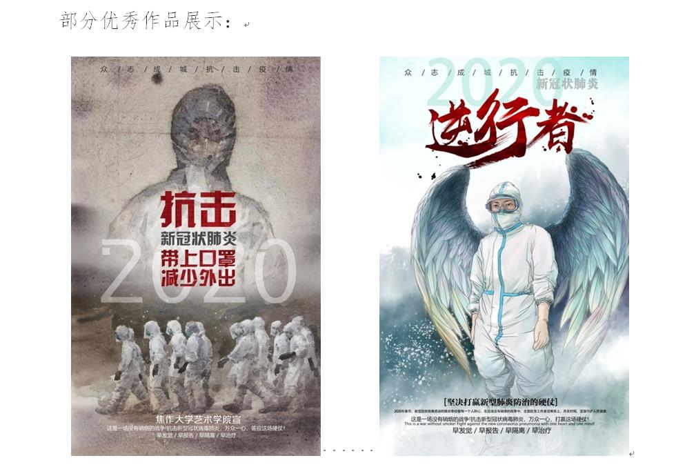 新春伊始,新型冠状病毒感染的肺炎疫情牵动着全国各地人民的心。在全国上下众志成城,全面打响疫情防控阻击战的关键时期,焦作大学艺术学院在做好基本防控工作的前提下,紧扣疫情防控主题,号召师生发挥绘画、书法、设计艺术特长,踊跃创作书画、设计作品,以艺术的方式凝聚人心,增强信心,传递正能量,为打赢疫情防控阻击战做出自己的贡献!