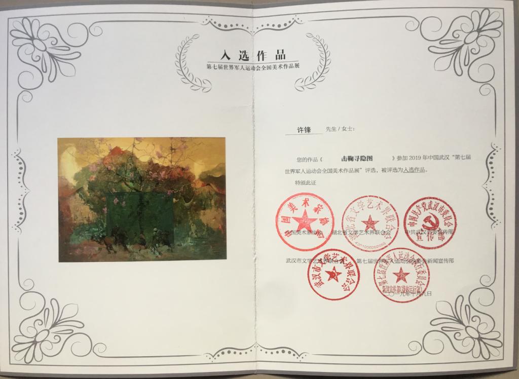 许锋美术作品入选第七届世界军人运动会全国美术作品展