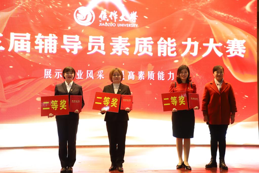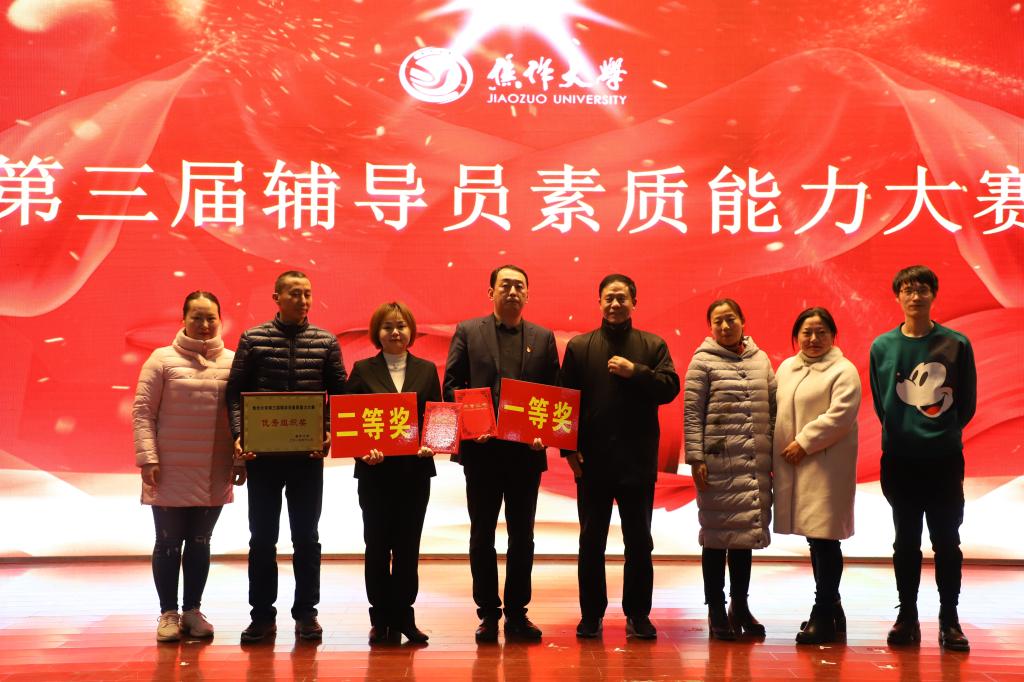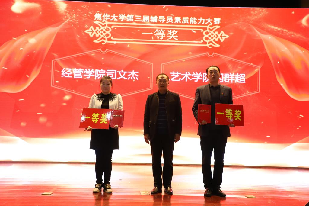12月13日,艺术学院政治辅导员闪群超、李薇在焦作大学第三届辅导员素质能力大赛分获一等奖和二等奖,艺术学院获优秀组织奖。大赛设一二三等奖和优秀奖,经过初试(笔试)和决赛两个阶段,决赛分为案例分析、理论宣讲、谈心谈话三个环节,取总分评奖。
