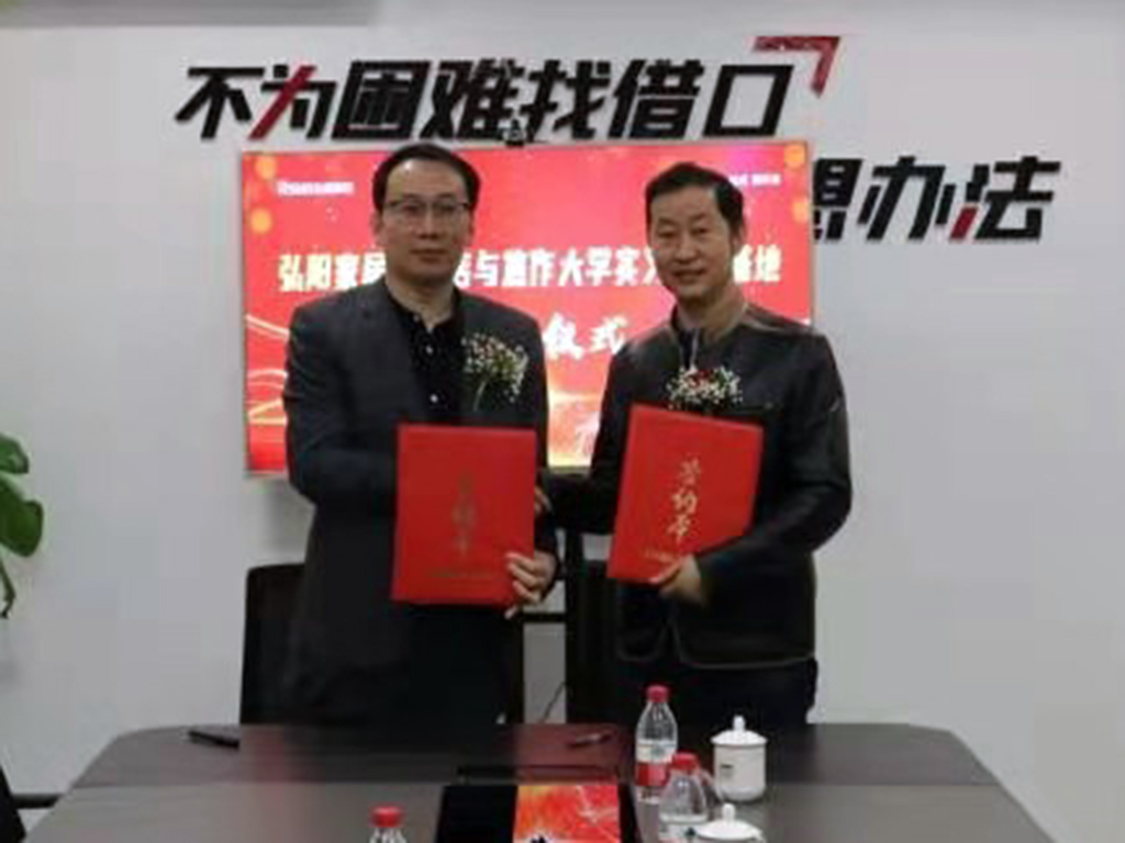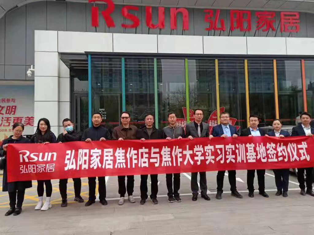 2021年4月7日,焦作大学艺术学院与弘阳家居有限公司实习实训基地签约暨揭牌仪式在弘阳家居焦作店隆重举行。双方就学生实习实训、校企“双元”育人、人才培养方案修订、课程改革、共建产教融合实习实训基地等内容进行了深入的探讨,并达成多项共识。