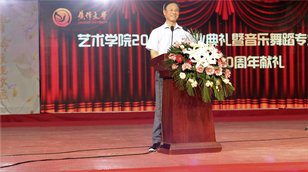2021年6月3日,艺术学院2021届毕业典礼暨音乐舞蹈专业汇报演出于北校区隆重举行。焦作大学校党委委员、副校长秦海金,党委委员:校党政办公室主任林五星、组织部部长李文静、宣传统战部部长张继文,以及学校各职能部门领导应邀参加了毕业典礼并和全院师生一起观看了精彩文艺汇演。