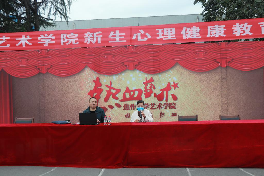 为普及心理健康知识,树立心理健康意识。焦作大学艺术学院学工办主任司冬利老师于2021年10月11日下午在北校区篮球场主持“大学生心理健康教育”讲座,本次活动主讲老师为周永平老师。