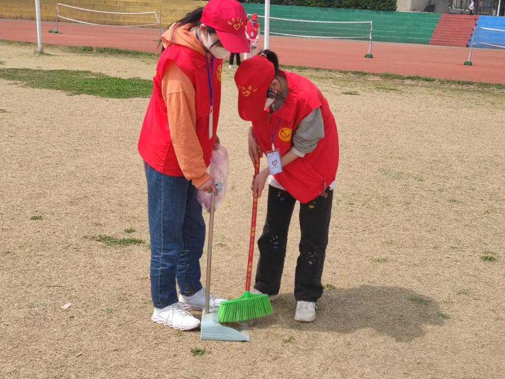为了丰富同学们在封校期间的课余生活,艺术学院给各班发了物品以支持班级团建活动,操场成了同学们这次活动的主要区域?;独止螅丛诓俪∩狭粝铝诵矶嗖杏嗬?。对此,学工支部党员老师们带领着青年志愿者成员于4月4日下午一点在操场上开展了“清洁校园,美化环境”的校园清洁活动。
