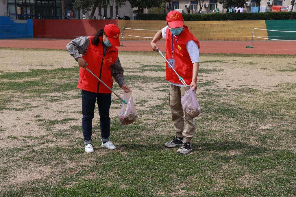 活动开始后,志愿者们分为三队拿着垃圾袋、夹子,认真清理杂物,整个活动井然有序。最后,党员老师们和志愿者进行合影留念后一起将垃圾丢入垃圾桶,活动圆满结束!