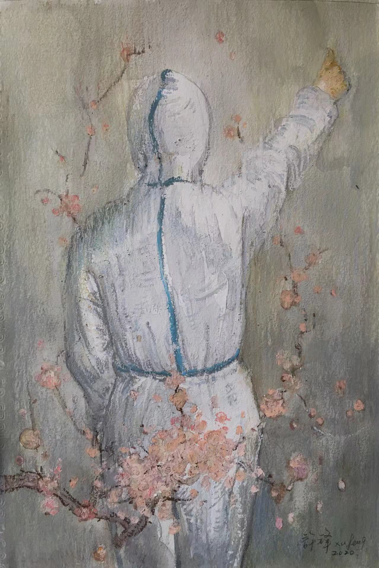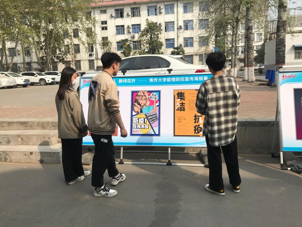 作品画面生动形象、内容充实,一经展出就引得了许多学生驻足观看,起到了很好的疫情宣传效果,也展现出了艺术学院师生的风采,为封闭期间的校园生活添加了一抹别样的色彩。