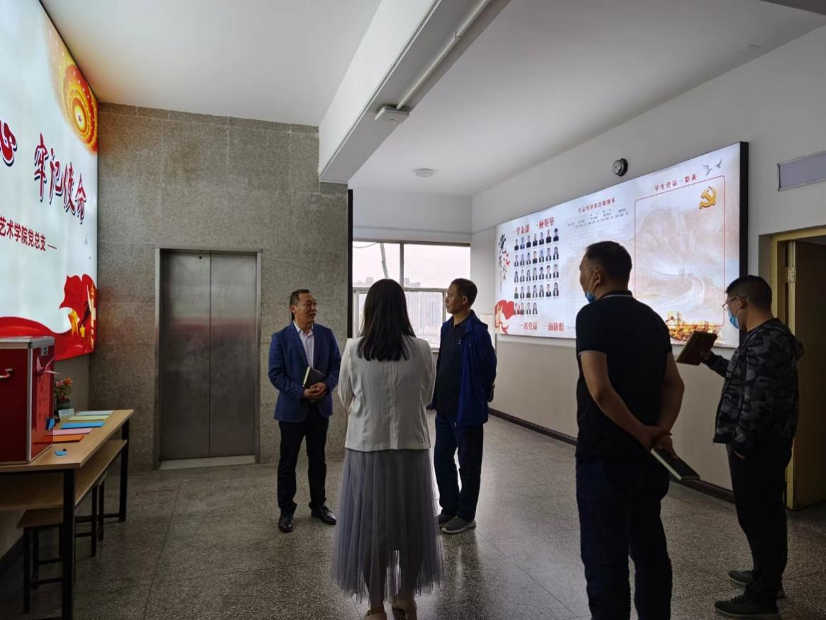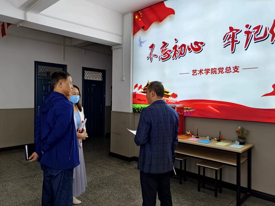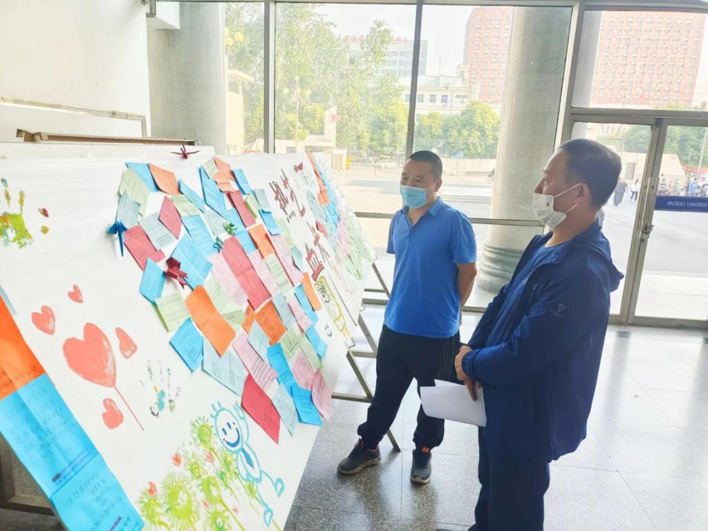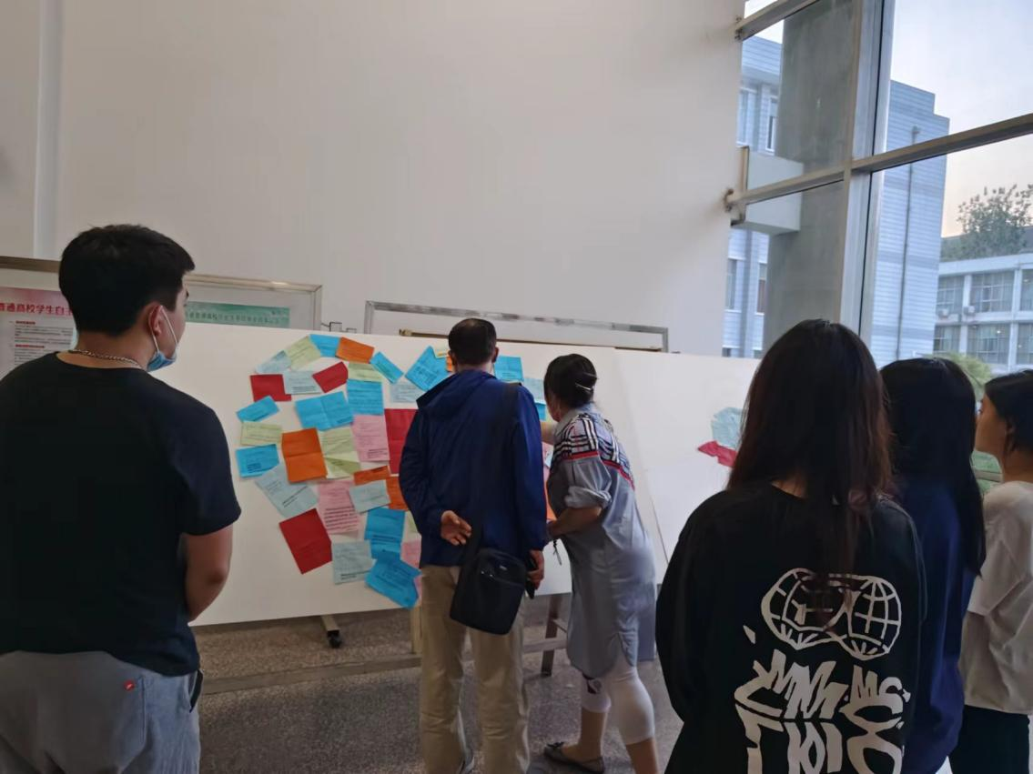 六.5月20日,我院党总支书记董永红老师及政治辅导员纪咏宜老师对活动信件展出形式进行指导。