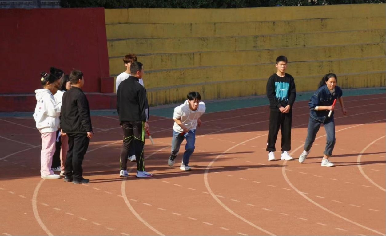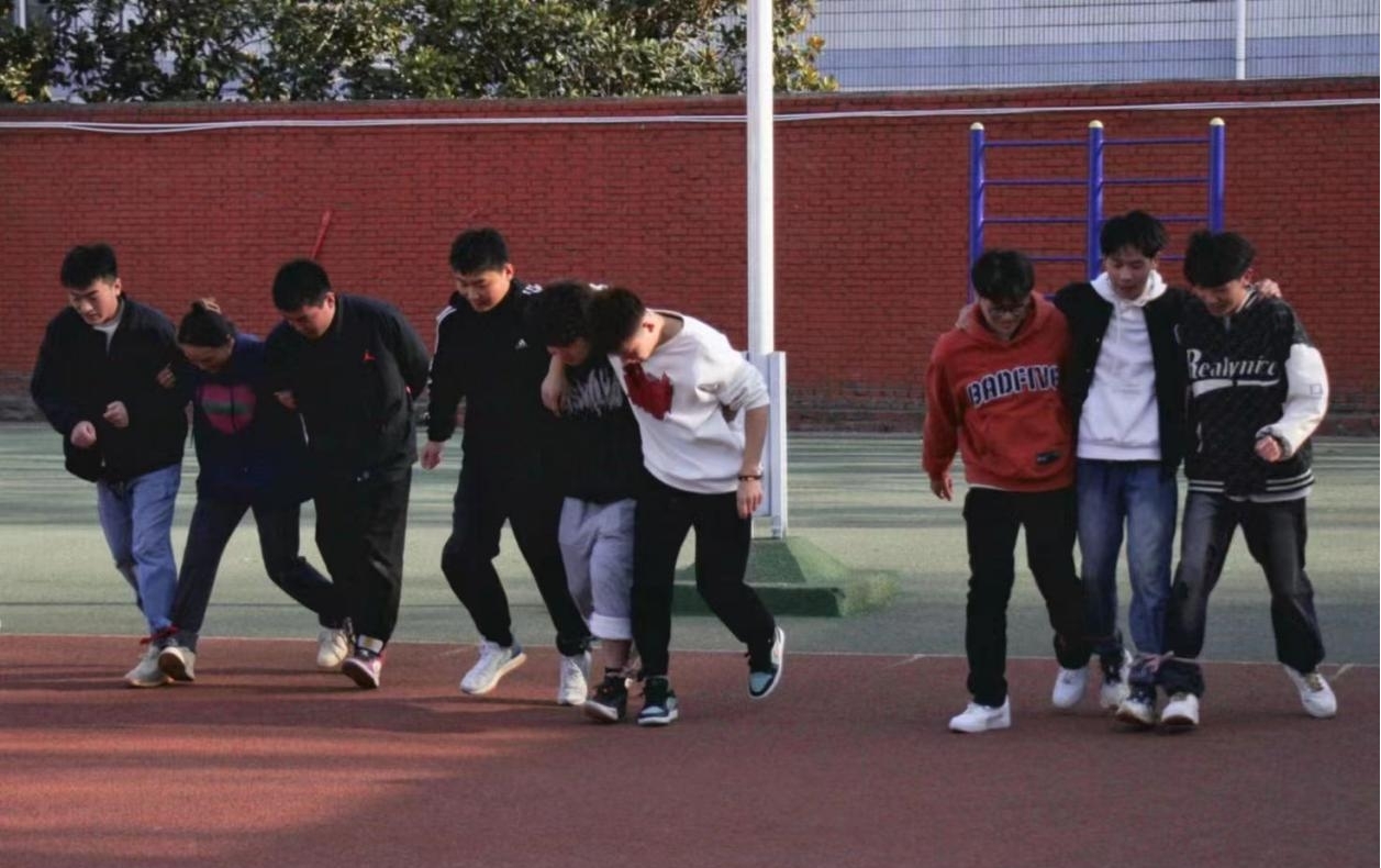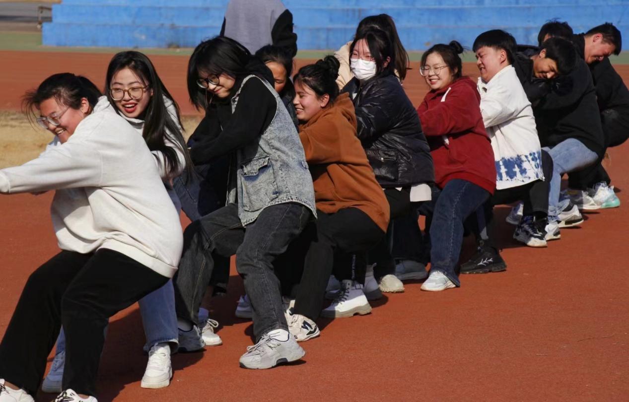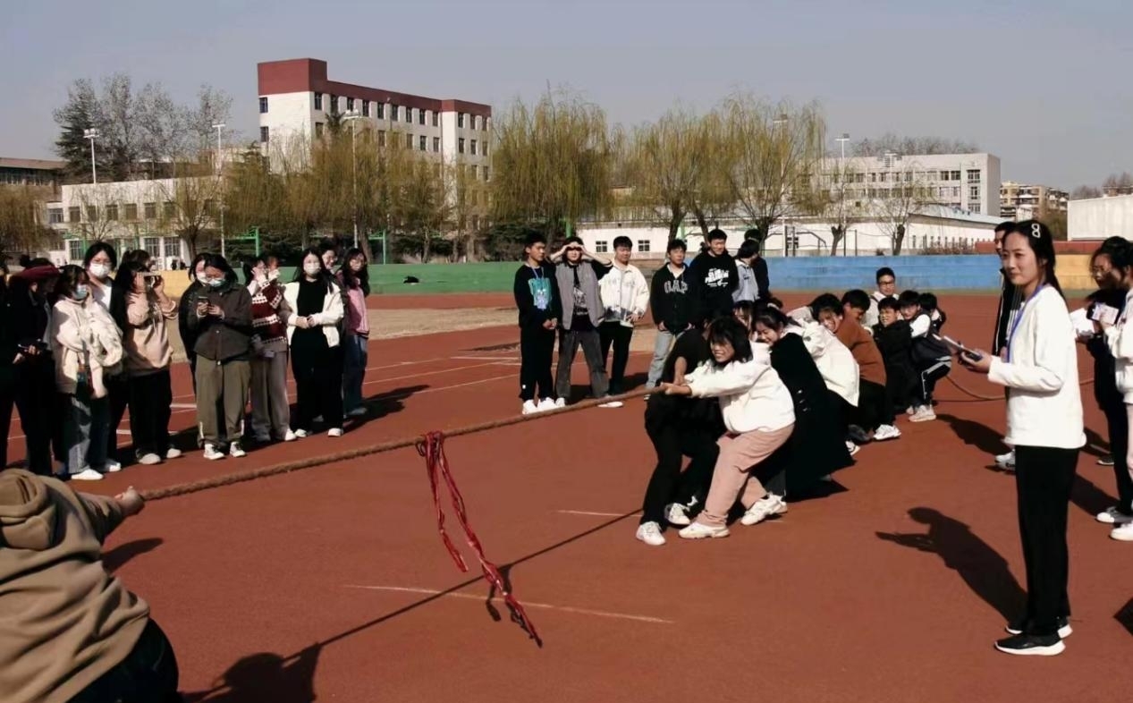 我院组织学生在课余时间,以班级和宿舍为单位进行拔河、50米接力跑、跳大绳、篮球、丢沙包、摸石头过河、三人四足和袋鼠跳各项运动。