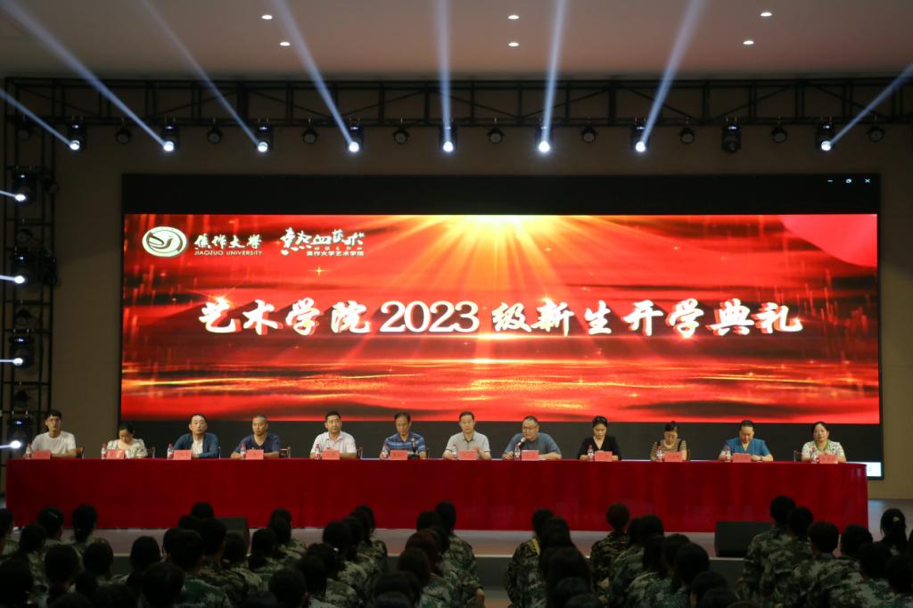 2023年9月11日晚七点,焦作大学艺术学院在北校区太极拳馆举办2023级新生开学典礼。艺术学院党总支书记董永红、院长范涛、副书记乔磊、副院长王喆、综合办主任冯来云、教学办主任丁琼、 学工办主任司冬利、各位辅导员老师及2023级全体新生参加本次开学典礼。