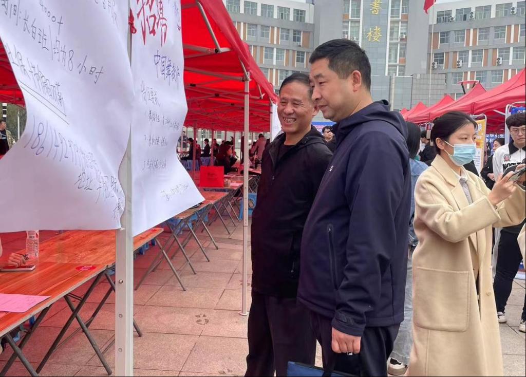 4月2日,“职引未来?职在河南”-焦作大学2024年大中城市联合招聘高校毕业生春季专场活动暨焦作大学----焦作师范高等专科学校专场招聘会在焦作大学图书馆南广场举办。艺术学院领导高度重视,党总支书记董永红、学工办主任司冬利、团总支书记闪群超、以及辅导员纪咏宜老师亲自组织带领学生前往招聘会,细心的询问招聘单位的详细情况,多方位的联系相关企业单位,为毕业生提供一个优秀的就业平台。