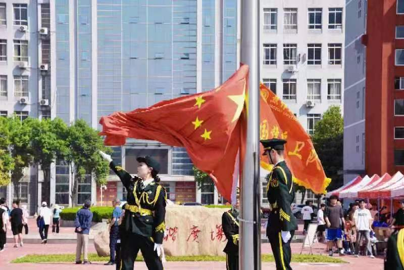 10月20日早上9:30分,国旗护卫队迈着铿锵有力的步伐,手举耀眼夺目的五星红旗,拉开了校运会的序幕,开幕式在南校区操场举行,入场式上,艺术学院代表队展现热血风采,诠释了崇学、尚艺、创新、力行的院风。他们精神抖擞、步履铿锵、激情绽放。在“热血艺术,感动常在”的口号声中,伴随《我和我的祖国》的歌声,用舞蹈表达心中的喜悦;运动员们用双手共同展开巨幅五星红旗,红色气球陆续绽放,现场气氛达到高潮。舞动青春与朝气,释放激情与热情,这是艺术学子的风采,更是青春的蓬勃与朝气!