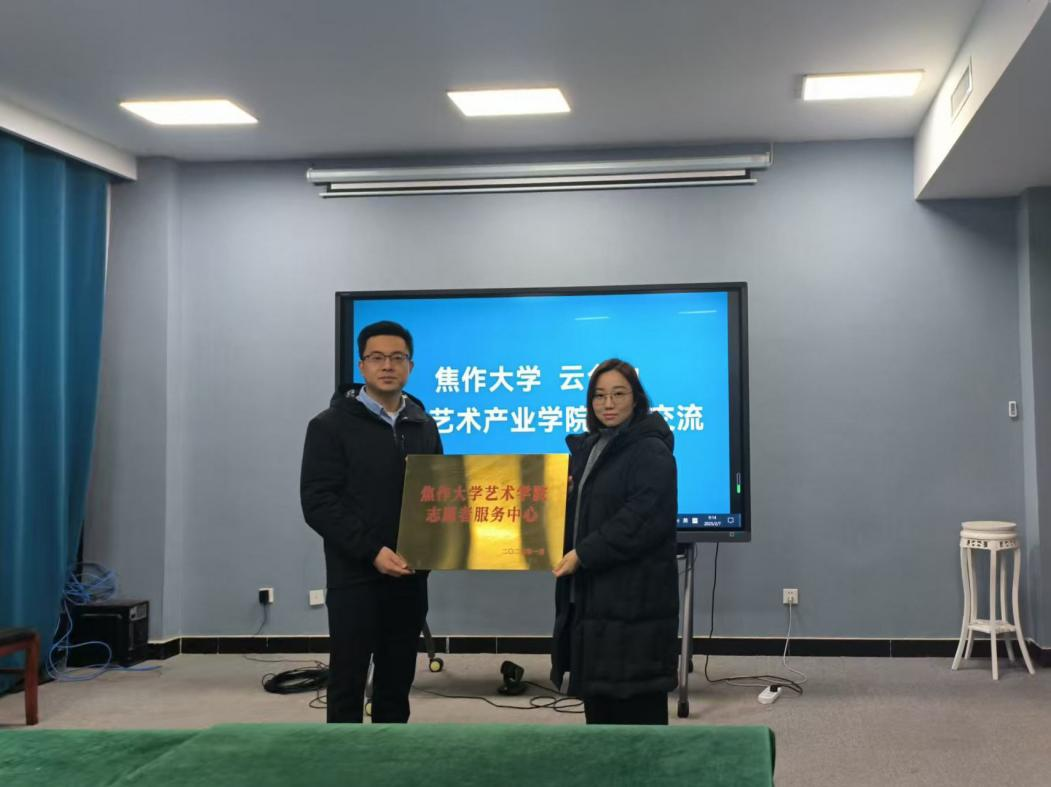 双方围绕如何依托云台山文化艺术产业学院开展深度合作进行交流。双方从课程建设、人才培养、文旅产品和项目研发等方面的合作进行了广泛交流,并达成初步共识。同时,会议现场还举行了“焦作大学艺术学院志愿者服务中心”的成立挂牌仪式,标志着双方合作迈出了重要一步。