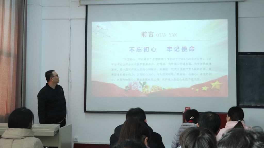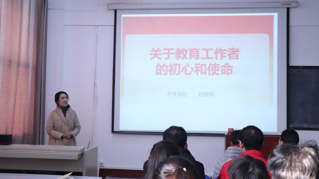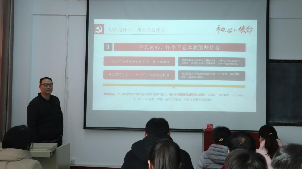 2019年12月16日下午,艺术学院党总支开展“不忘初心、牢记使命”微党课宣讲活动,教工党支部全体党员和学生党支部党员及积极分子共同聆听了宣讲。