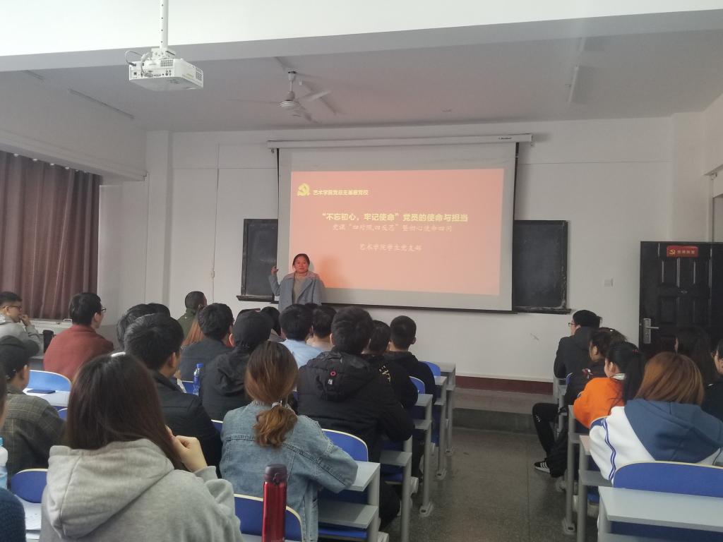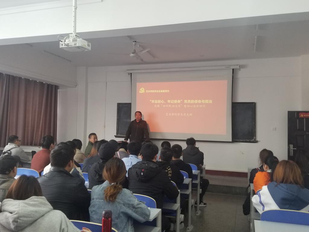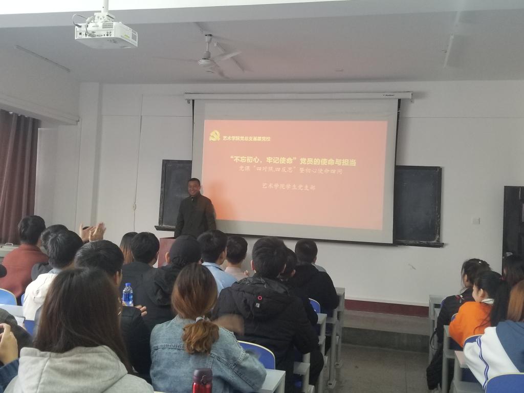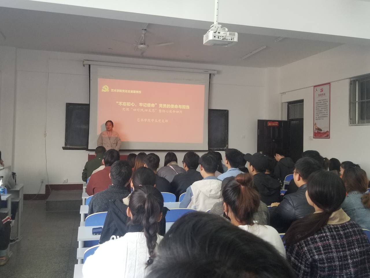 11月15日艺术学院学生党支部在北校区1#505开展了 “不忘初心、牢记使命”党员的担当与责任微党课暨“四对照四反思”和“初心使命四问”主题活动。学生党支部全体党员和入党积极分子参加,大家就开展“不忘初心、牢记使命”以来进行的“四对照四反思”和近期“初心使命四问”活动结合自身工作展开了汇报交流,通过活动,大家提高了思想觉悟,提升了工作责任感,明确表示要不断学习进步,不断提高服务水平,为四校联创尽力,为学生工作添彩。