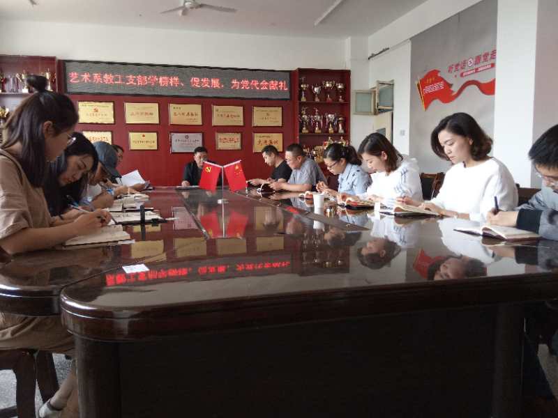 2019年5月13日下午,艺术系教工支部全体党员教师在党员活动室召开以“学榜样 促发展 为党代会献礼”主题的专题会议,教工支部书记乔磊主持了会议.