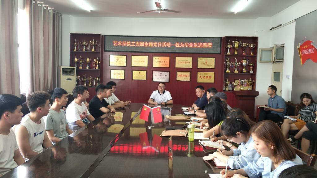 2019年5月30日下午,艺术系教工支部全体党员教师在党员活动室以“我为毕业生送温暖”为题召开主题党日活动。教工支部的党员教师给予了各个专业的毕业生代表就毕业季面临的一些问题进行了指导,如毕业生档案存放、就业选择等问题进行了指导。
