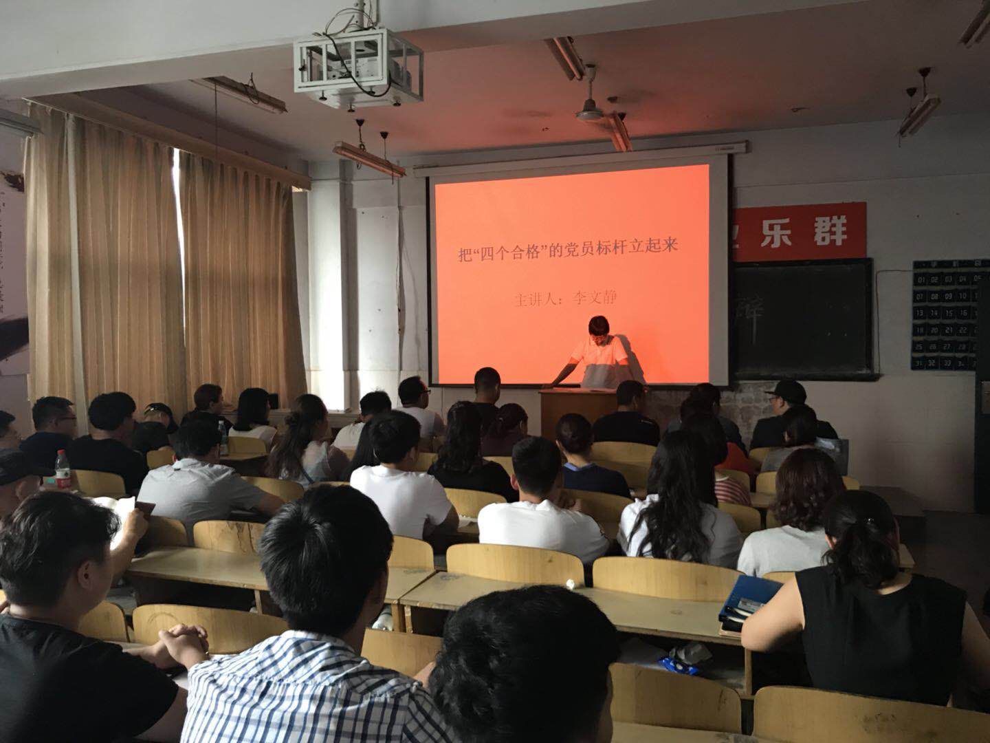5月7日下午,艺术系党总支在504多媒体教室举行“把‘四个合格’的党员标杆立起来”专题党课,党总支书记李文静同志进行了授课,教工和学生两个党支部全体党员同志参加了学习。在党课上,李文静围绕树立“四个合格”的党员标准意义重大、深刻理解“四个合格”的内涵等三个方面进行了逐一阐述,并结合党课内容要求全体党员在“两学一做”学习教育活动中践行“四个合格”标准,认真学习党章、党规和习近平总书记系列讲话精神,坚持“五个必须”、恪守“三严三实”、做到“四个服从”,言行一致做合格共产党员。