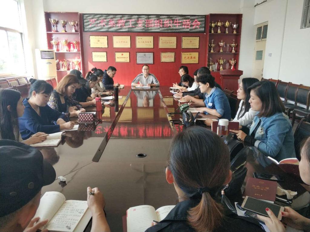 2018年9月28日上午,为持续深入学习贯彻习近平新时代中国特色社会主义思想和党的十九大精神,持续增强管党治党政治责任,持续纠正“四风”问题,持续深化构建良好党内政治生态,艺术系教工支部在党员活动室开展了巡视整改专题组织生活会,各位教师认真开展了批评与自我批评,反思自己在工作中存在的问题,并提出了整改措施,并表示在今后的工作中会积极改正,充分发挥党员教师的模范带头作用。