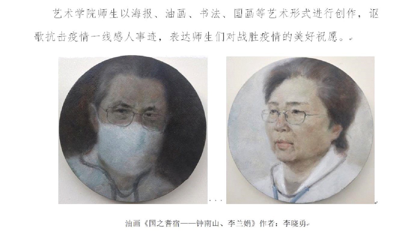在2020年上半年疫情期间,学院积极组织师生以创作助力抗疫,开展以《抗击“新冠”,“疫”不容缓》为主题的师生创作展。用饱含深情的作品,传递着战“疫”必胜的信念和决心。