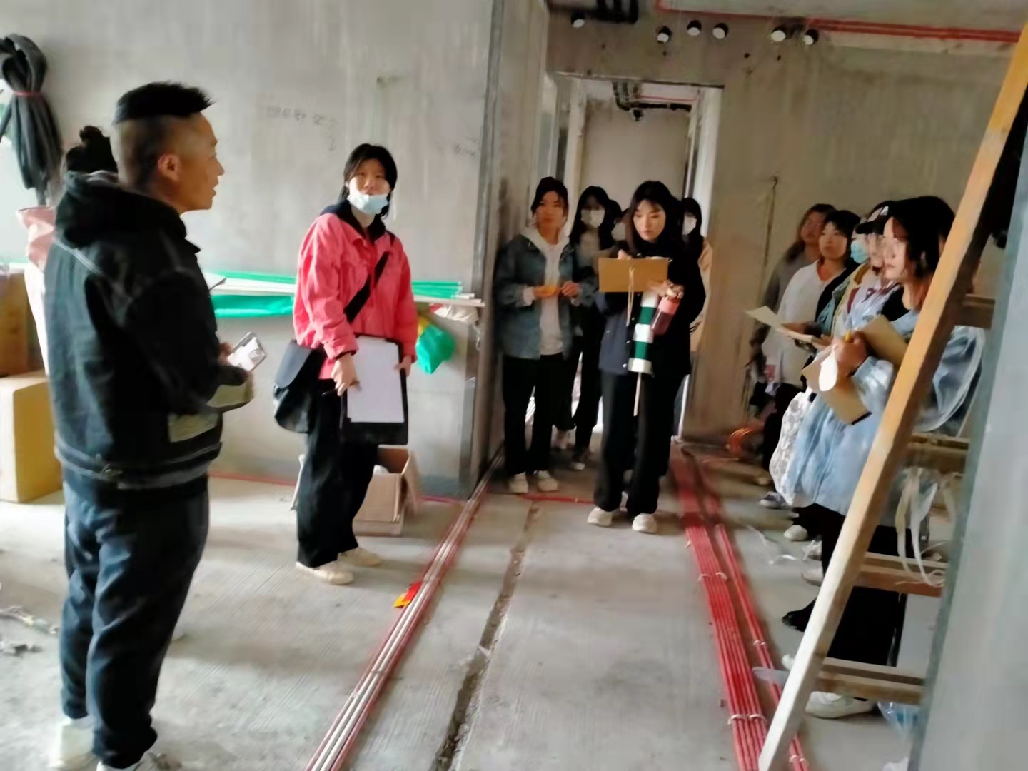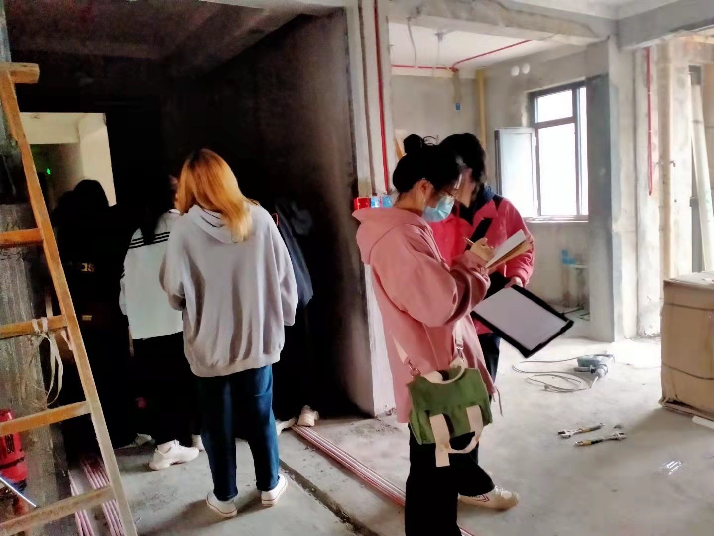 在东易日盛设计师王元老师现场指导下,2020级2班的学生认识到量房的重要性,在现场的真实环境中,对前期开关位置、插座数量的设计与功能结合有更细致的分析。