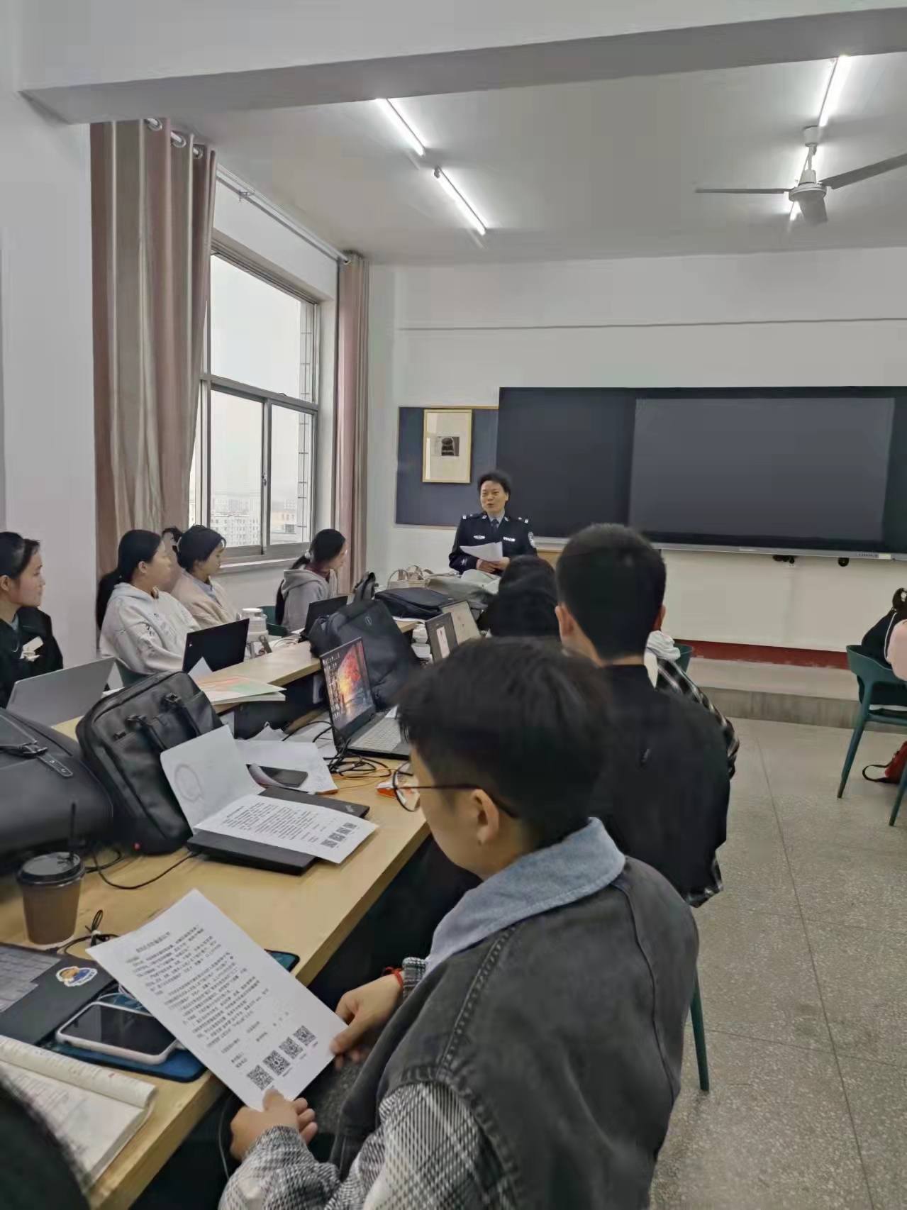 朱警官向同学们详细讲解了诈骗的常用手段,如刷单兼职、冒充好友QQ借钱、充当电商客服退款、木马病毒盗号、售卖游戏装备、套路贷等针对大学生的惯用诈骗手段。她告诫同学们不要轻信“足不出户,日赚千元”、“动动手指,轻松赚钱”等诈骗广告。朱警官又通过焦作市的诈骗案例,向同学们揭示了电信网络诈骗就在我们身边。她希望同学们同学们能树立科学理性的消费观念,学会保护自己,提高警惕,增强防范意识,呼吁同学们用实际行动营造和谐、平安、绿色的大学校园。