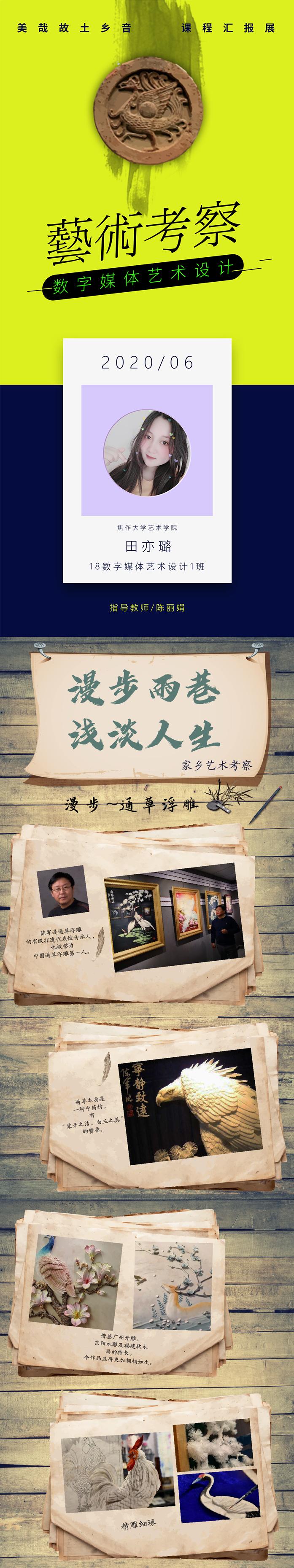 两周的艺术考察课结束了,按照以往,同学们是可以到省外进行为期十天的考察学习,开阔眼界,增长见识。因为新冠疫情影响,这次艺术考察课显得有些特殊。同学们只能尽量克服困难,把考察地点放在了自己的家乡,在家附近不远的地方,做一次实地深入考察。