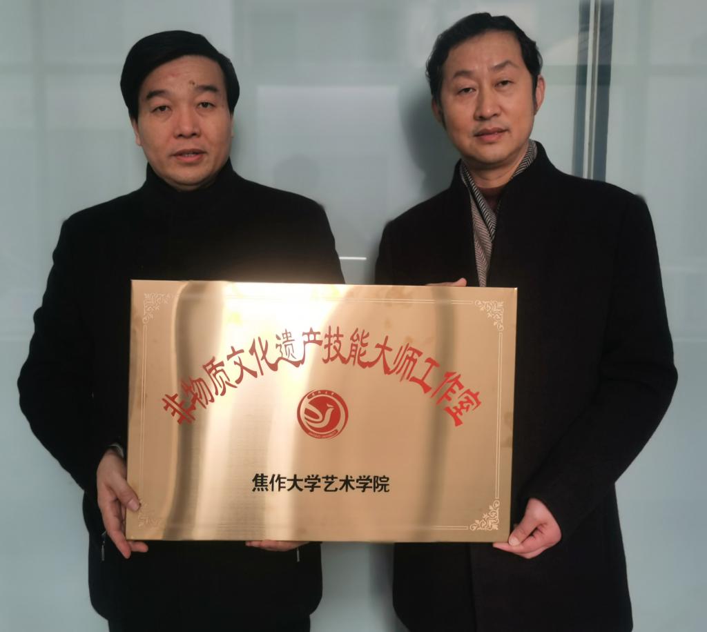 2020年12月24日,焦作大学艺术学院非物质文化遗产技能大师工作室成立,艺术学院院长范涛、国家非物质文化遗产传承人、高级工艺美术大师柴战柱共同举牌,焦作大学艺术学院非物质文化遗产技能大师工作室成立,焦作是怀庆府故地,具有悠久的文化历史,涌现出众多能工巧匠,创造出大量的艺术珍品,陶冶了人们的情操,丰富了人们的精神生活,传统工艺非物质文化遗产的传承与发展是时代的要求,结合学校发展方向,学院发展实际,为更好探索非物质文化遗产新的传承模式,技能大师工作室运作参照现代学徒制人才培养模式,找准传统工艺在现代社会发展的趋势,最大程度上发挥了现代教学优势,将传统的“师傅带徒弟”与现代教学培养模式相结合,以技能大师工作室为载体,促进院校与工艺产业之间的合作,实现工学结合、校企合作的目的。经过长时间合作、协商,在学校的支持下,在关于成立焦作市非物质文化遗产研究中心的申请基础上,艺术学院将焦作陶瓷行业内的国家级非物质文化遗产代表性项目(当阳峪绞胎瓷烧制技艺)代表性传承人,享受国务院政府特殊津贴专家,正高级工艺美术师,地理标志产品当阳峪绞胎瓷行业标准制定起草人,中国工美行业艺术大师,中国传统工艺大师,中国工艺美术协会理事,引入学校,并与相关企业合作,培养学生的创作能力和实践能力,为学校双高工程建设,为艺术学院艺术设计高水平专业群建设注入活力。