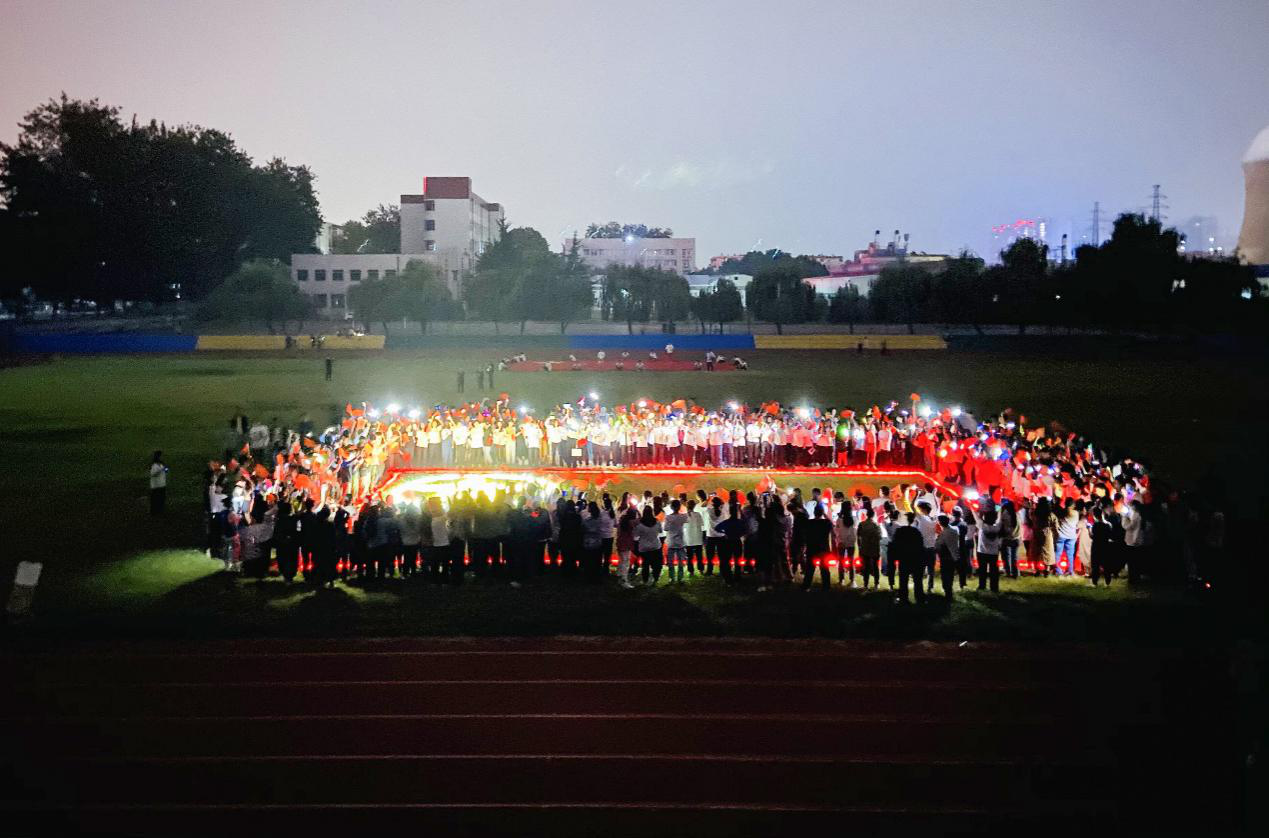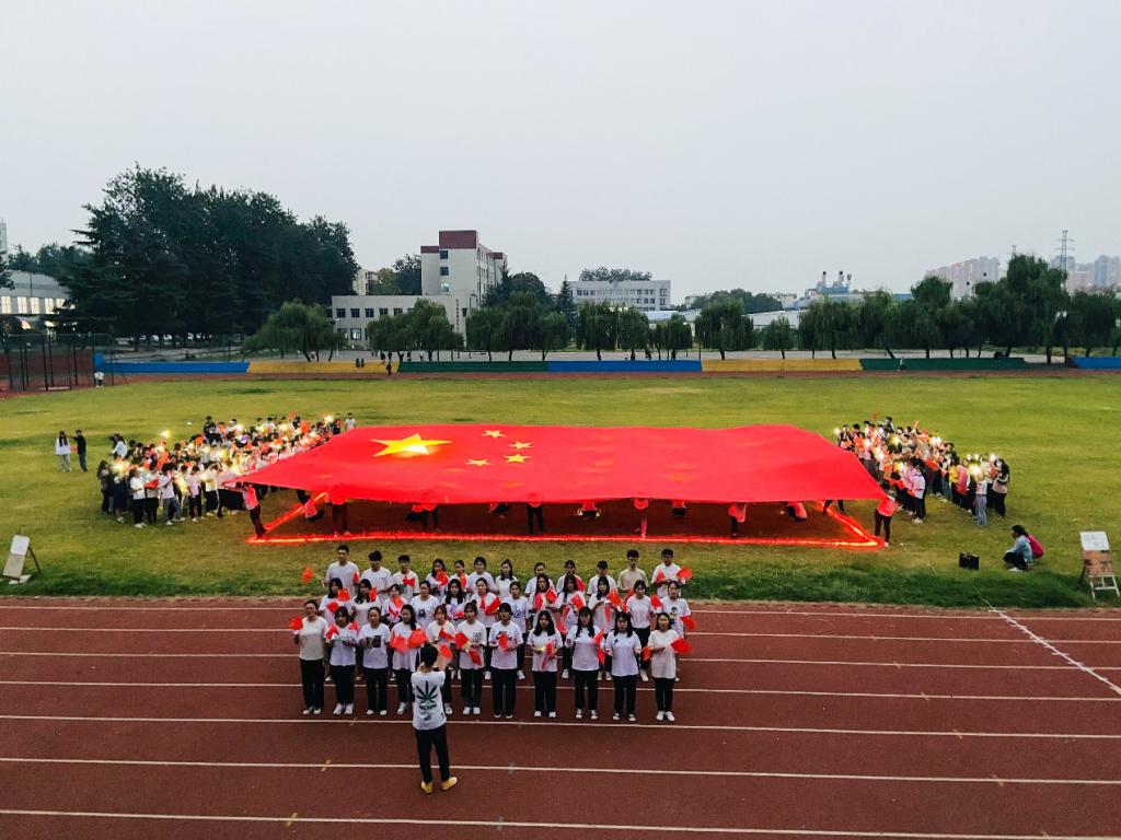 29日傍晚,在操场组织大二、大三全体团员开展“夜唱青年团,红歌响校园”快闪团日活动。学生干部们高举国旗,合唱团的同学们唱响团歌,团员们围绕国旗挥舞着手机照亮旗帜,用炽热的情怀对祖国献上最诚挚的祝福。