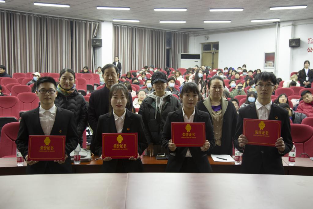 由在场的领导老师为第三届全体成员颁发聘书,为第四届优秀学生代表颁发荣誉证书。