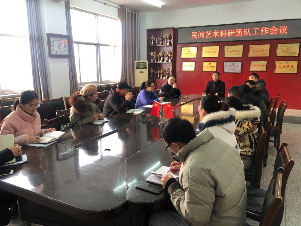 2020年12月21日,焦作大学艺术学院民间艺术科研团队正式成立。艺术学院民间艺术科研团队是艺术学院在今年6月份就已经拟定成立的科研团队,现在,太极拳、云台山已成为焦作的两张名片,民间艺术传承下去,发展起来,进而走出去,成为打造新的经济增长点的重要源头,中国在从小康社会向社会主义现代化国家转型发展的过程中,发掘民间艺术有助于维护社会的稳定和实现社会主义文化大发展、大繁荣。焦作大学艺术学院作为焦作市有影响力的艺术团队,有责任有义务为弘扬焦作民间艺术、成立焦作大学艺术学院民间艺术科研团队,扩大焦作大学社会影响力,增强焦作大学服务地方经济文化的能力,为焦作大学双高工程建设、艺术学院高水平专业群建设、服务学生专业实训实习发挥作用。