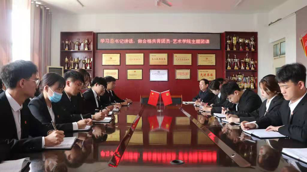 2021年4月27日艺术学院团总支召开“学习总书记讲话,做合格共青团员”主题团课,团支部召开“党史学习教育”主题团课。