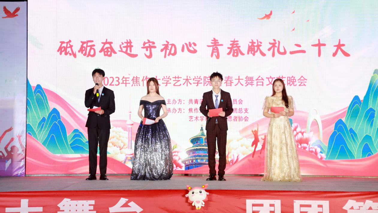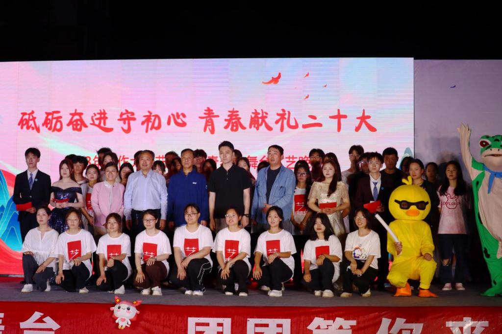 为深入贯彻学习党的二十大精神,坚决落实“立德树人”的根本任务,展现师生昂扬奋进的精神风貌,进一步丰富大学校园文化生活,助力学校升本工作,焦作大学艺术学院于2023年5月31日晚上7:30,在北校区举办“砥砺奋进守初心,青春献礼二十大”青春大舞台文艺晚会。焦作大学机关党总支书记、团委书记赵文平、艺术学院党总支书记董永红、校团委副书记韩军以及学院辅导员和部分教师出席了本次活动。