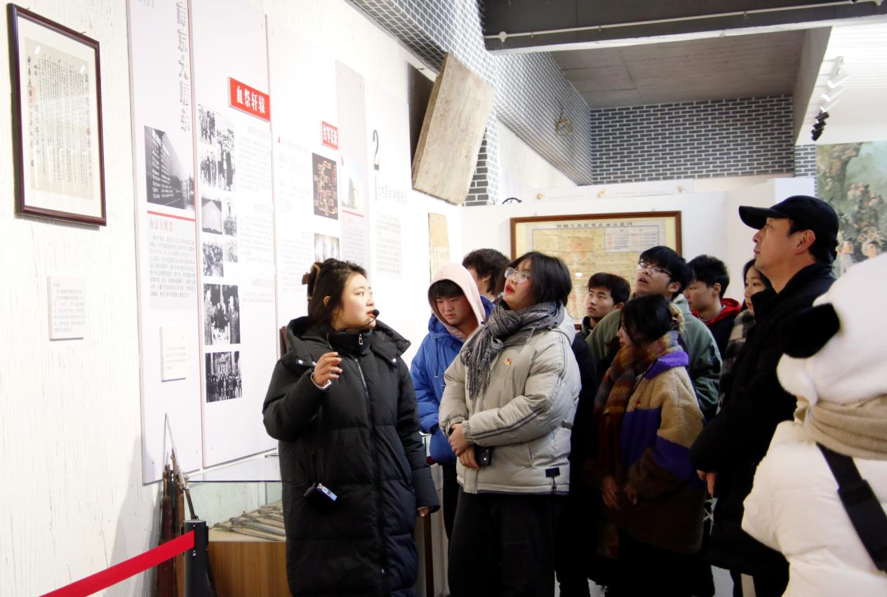 为深入开展学习贯彻习近平新时代中国特色社会主义思想主题教育,引领广大团员和青年认真学习领会习近平新时代中国特色社会主义思想,争做有理想、敢担当、能吃苦、肯奋斗的新时代好青年。为弘扬中华优秀传统文化,营造温馨的节日氛围,增强艺术学院的凝聚力,12月22日,艺术学院团总支带领团员和青年前往焦作市典礼学书匾额展览馆开展“传承红色基因,汲取奋进力量”主题团日活动。参与此次活动的有艺术学院党总支书记董永红、副书记乔磊、学工办主任司冬利、团总支书记闪群超和各位辅导员老师。