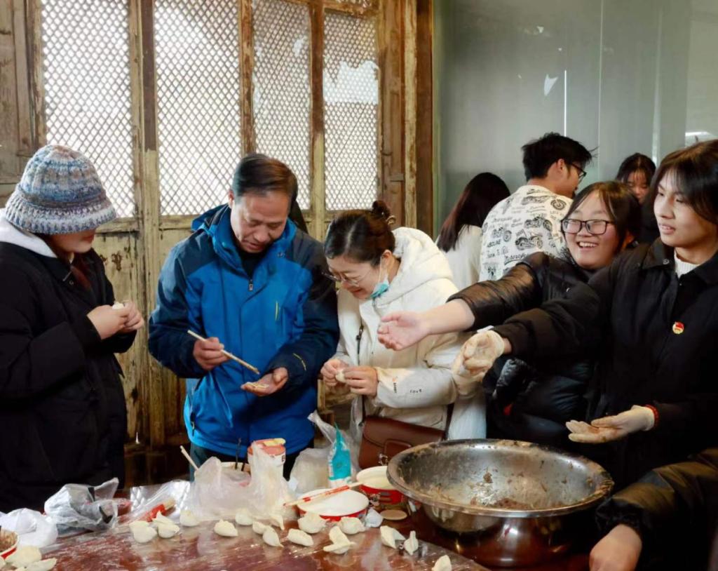 恰逢冬至,共包水饺,温暖每分每秒。同学们热情高涨,和面、擀面皮、包饺子有条不紊,配合默契。老师和同学们一起参与到包饺子的环节,同学们劈柴、择菜、做饭……大家积极热情,处处洋溢着欢声笑语,在各位“厨师”的精心制作下,各种形态、馅料饱满的饺子错落有致地呈现在众人面前。有的花边小巧、精致可爱,有的样式新奇、模样独特,但都承载着浓浓的情谊与祝福,浓缩着满满的收获。或许这就是团建的意义,家的温暖弥漫在每个人的碗碟间、笑脸上。