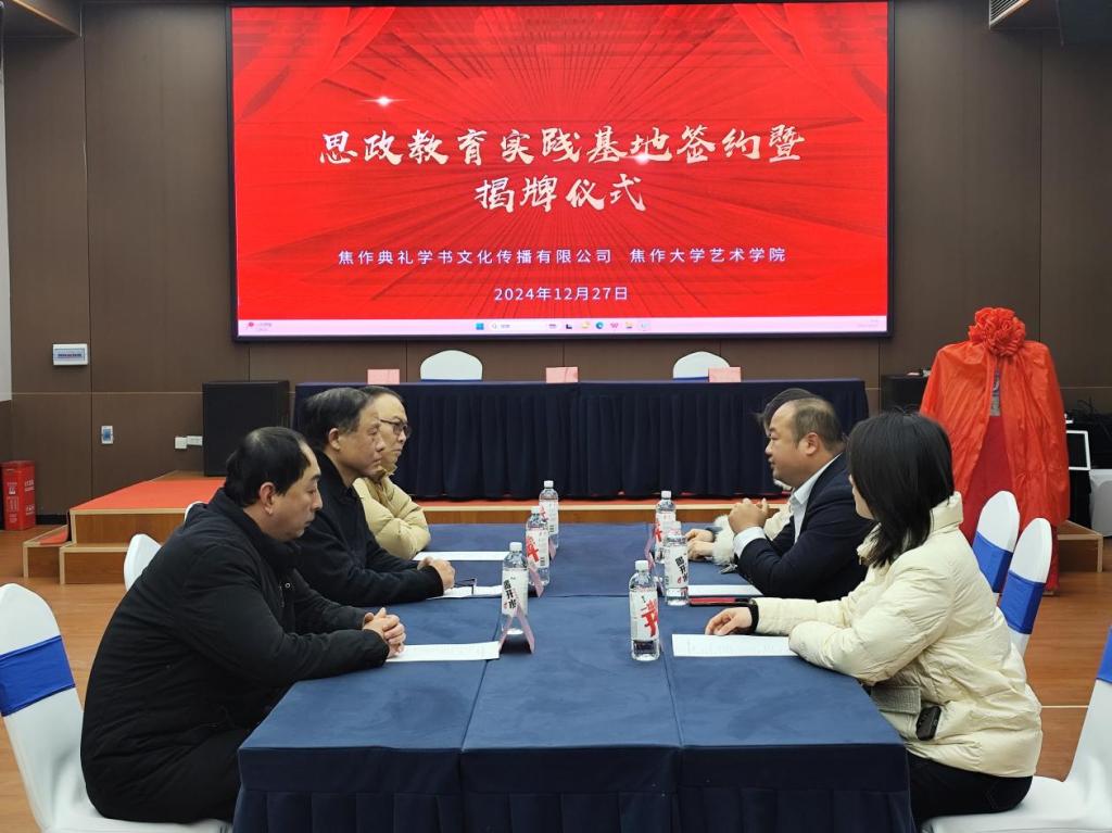 2024年12月27日上午,焦作大学艺术学院与焦作市典礼学书文化传播有限公司签约及挂牌仪式会议隆重举行,这标志着双方在文化与教育领域的深度合作正式开启。