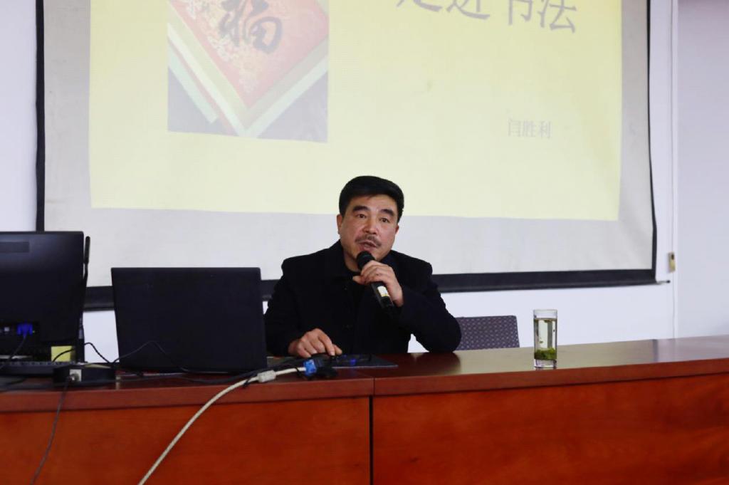 本次讲座邀请中国书法协会会员、河为传承中华文化、品中华经典、赏文化韵律,提高大学生对中华南省温县书法家协会主席闫胜利老师为师生讲解中国书法的历史和书写技法。闫胜利老师斋号和堂,河南温县人,师从刘文华。擅长楷书、行草和隶书,作品获第三届中国书法兰亭奖,中国书协培训中心教学成果二等奖,入选全国第六界楹联书法展,全国第二届青年书法篆刻作品展,全国首届手卷书法作品展等重大展览。