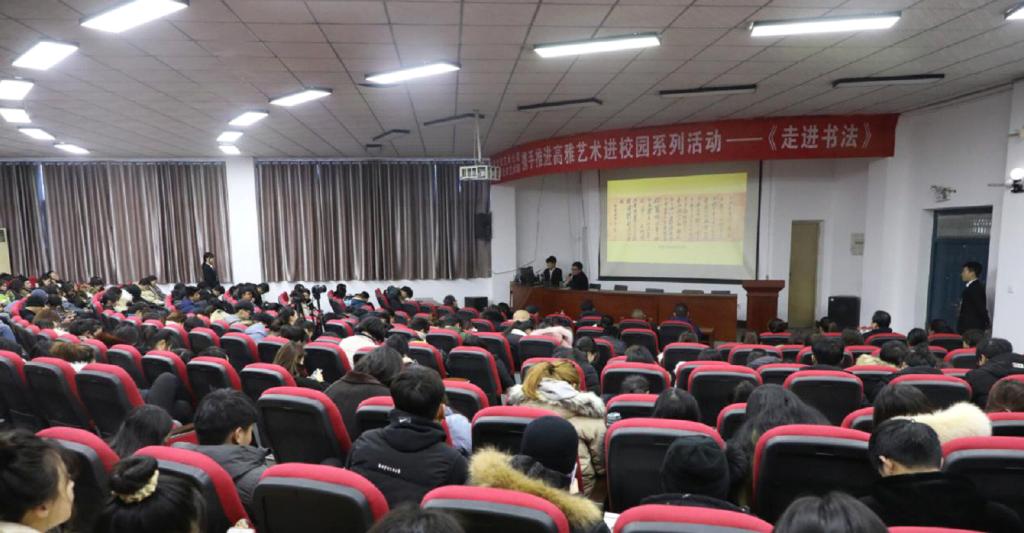 为传承中华文化、品中华经典、赏文化韵律,提高大学生对中华经典文化韵律的感受力和传承素养。艺术学院公共艺术教学部与金海文化艺术公司于2019年12月26日上午在北校区报告厅,召开高雅艺术进校园系列活动——《走进书法》讲座。