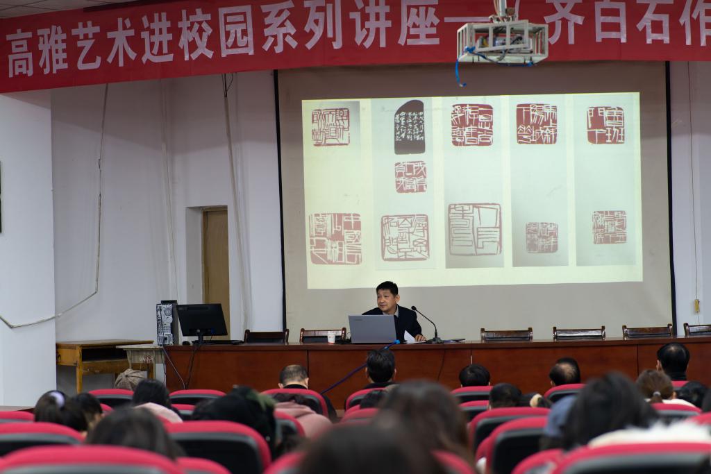 谢小毛先生以“齐白石作品引起的话题”为主题,从齐白石作品到底好在哪里;如何看待当前极度西化的中国画创作;齐白石对后代艺术家的影响三个方面详细介绍了齐白石先生书画、篆刻作品的精髓之处,以及齐白石对后世影响。力争通过口语化的语言,独特的学术角度,让更多的人认识了解齐白石和他的作品。提高大家对传统文化的认识,更加坚定文化自信。