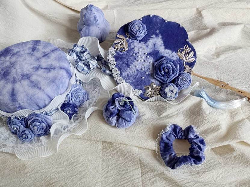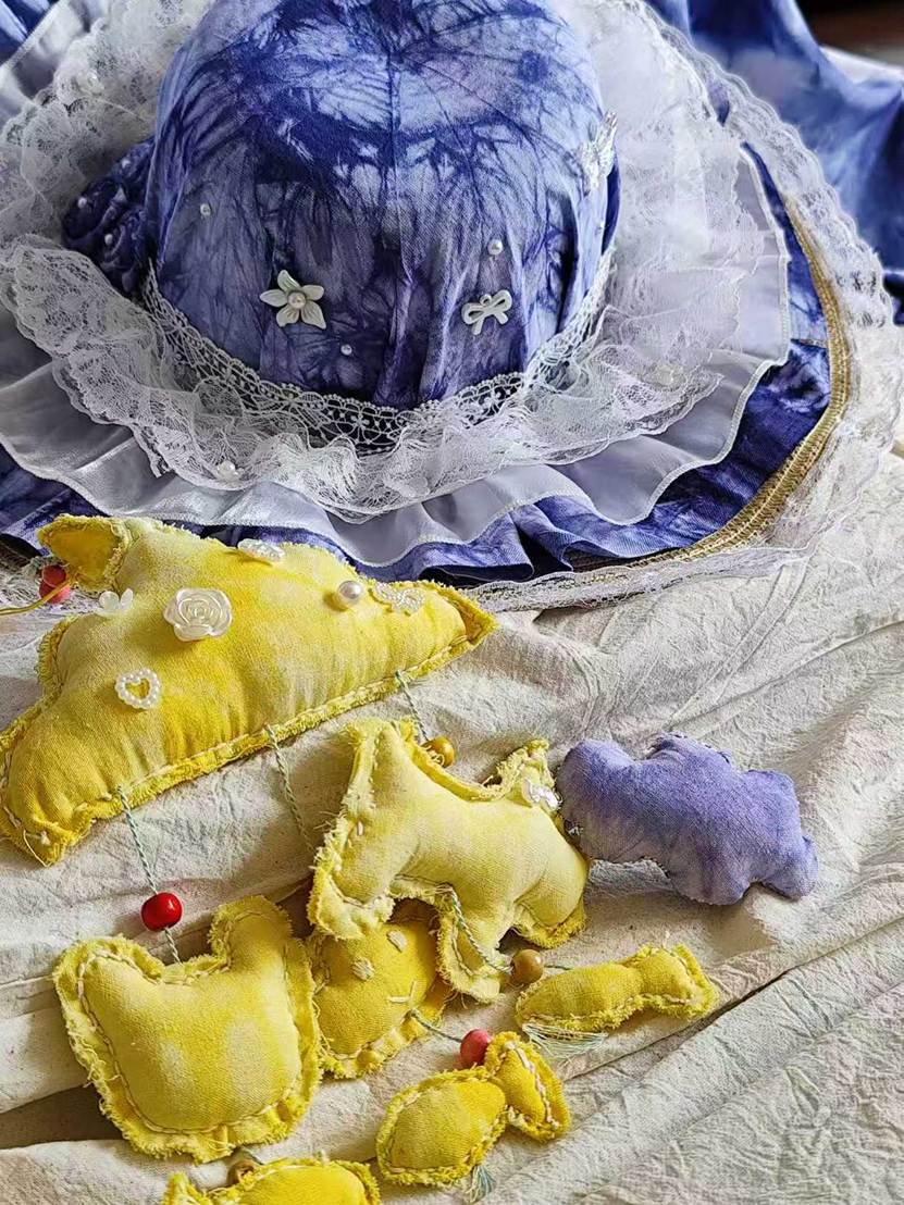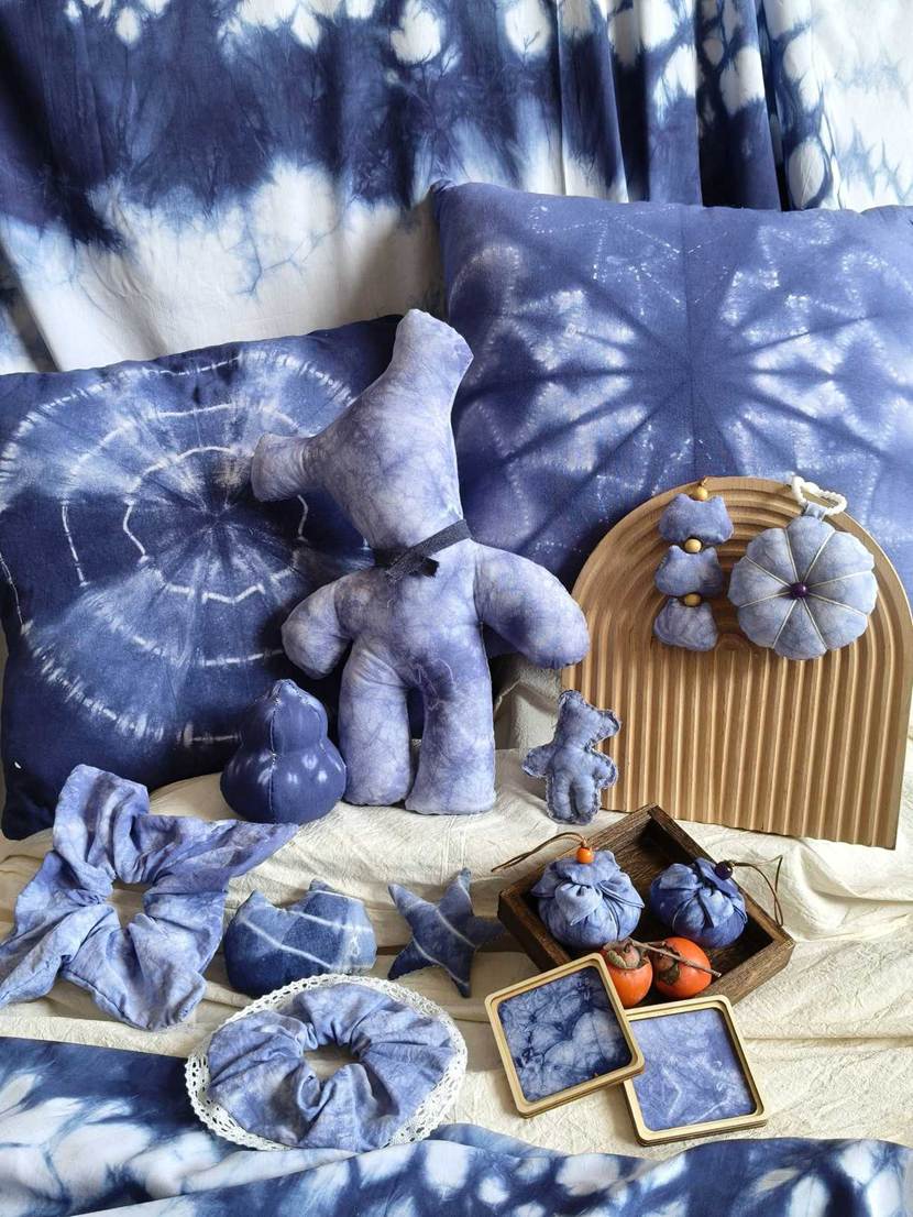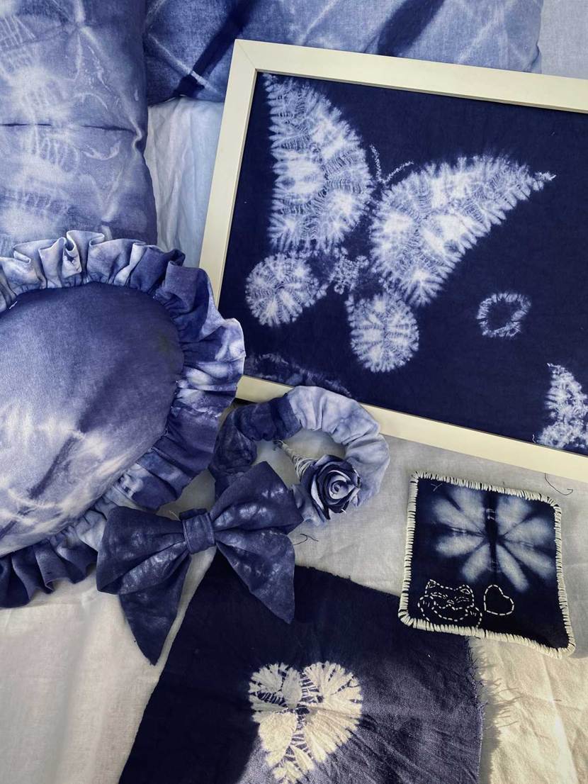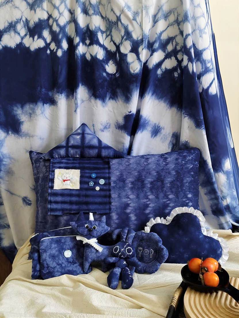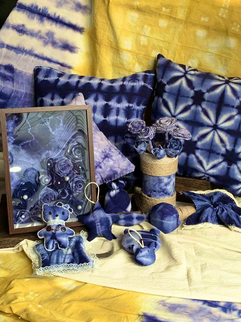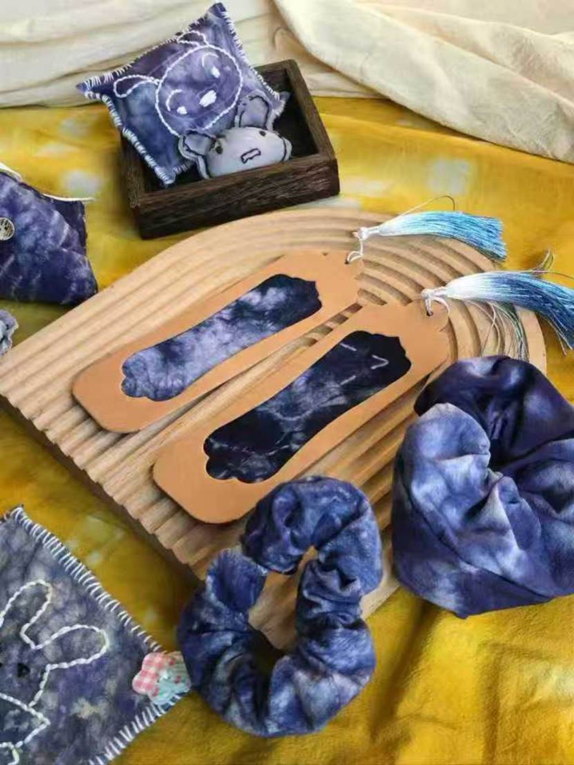 他们将几何图案、花草纹样等现代设计元素融入传统工艺,从布料折叠、棉线捆扎,到浸染上色、清洗晾干,每一个步骤都凝聚着专注与巧思。
