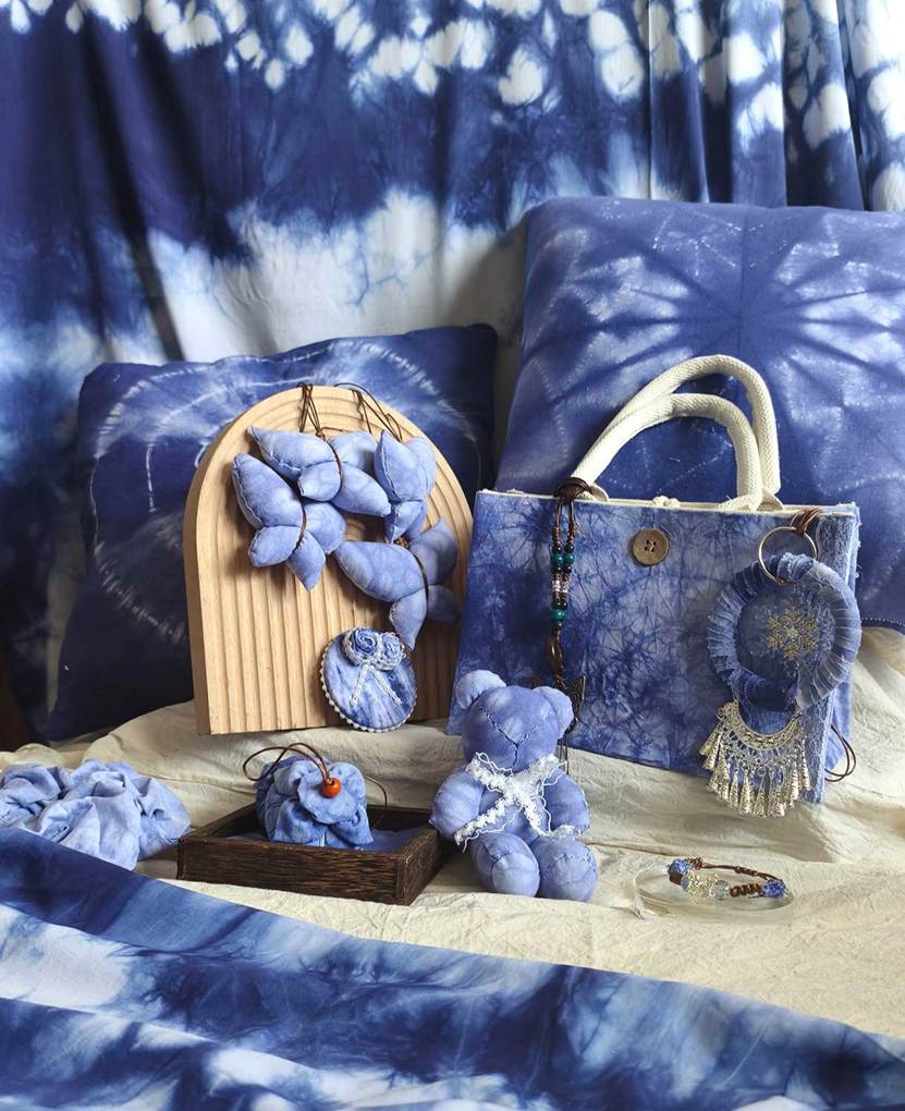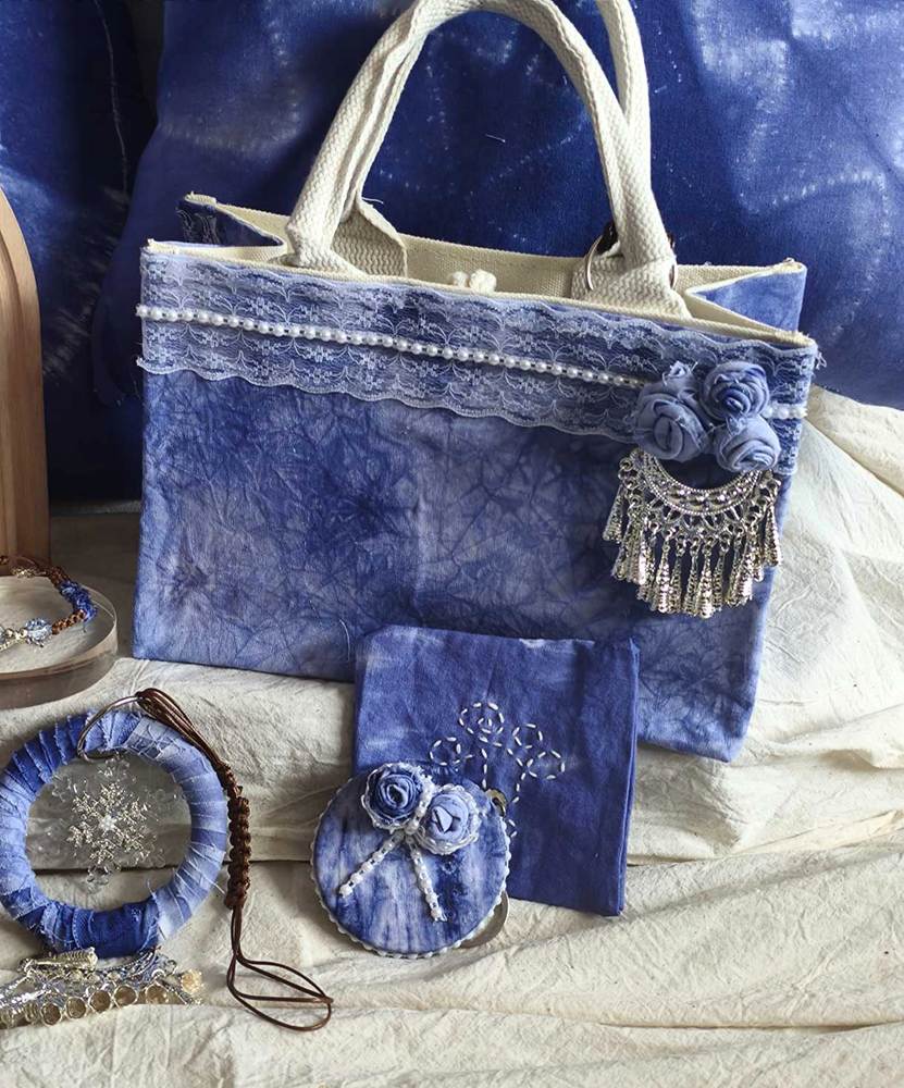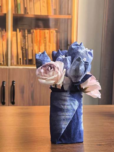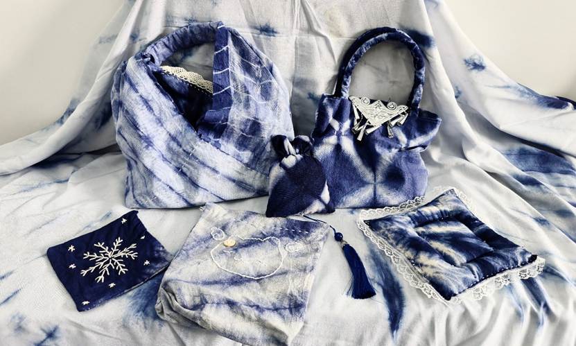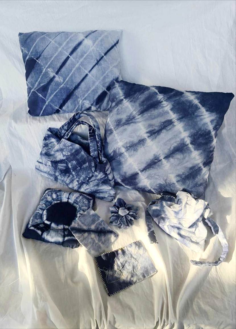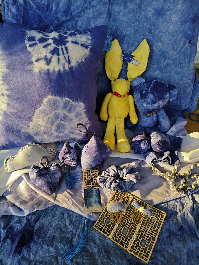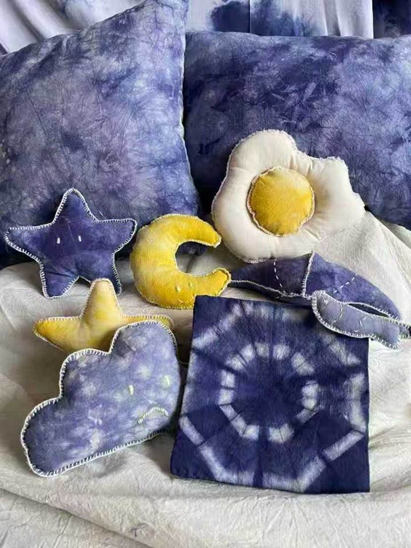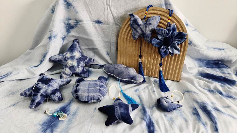 他们将几何图案、花草纹样等现代设计元素融入传统工艺,从布料折叠、棉线捆扎,到浸染上色、清洗晾干,每一个步骤都凝聚着专注与巧思。