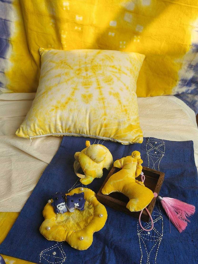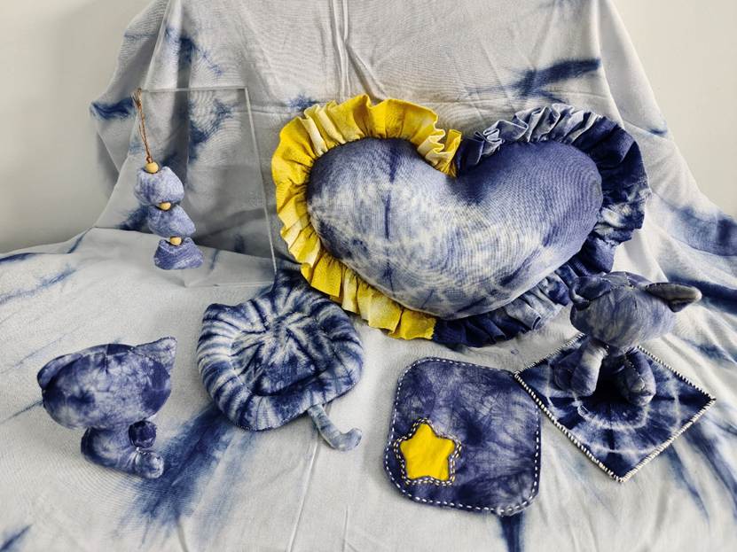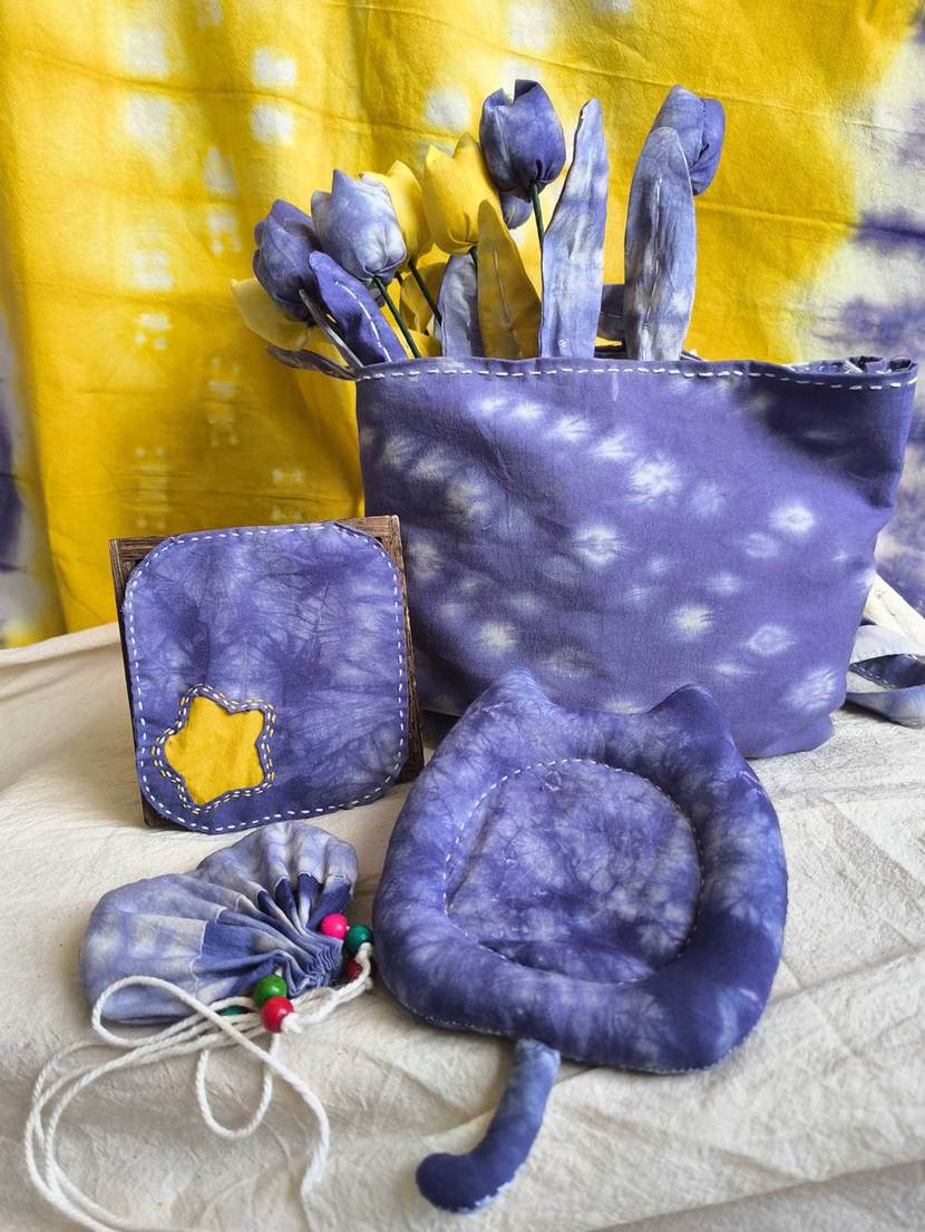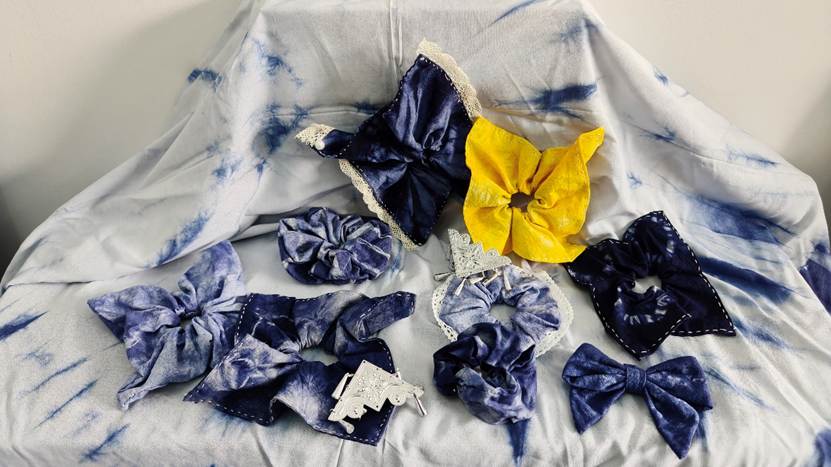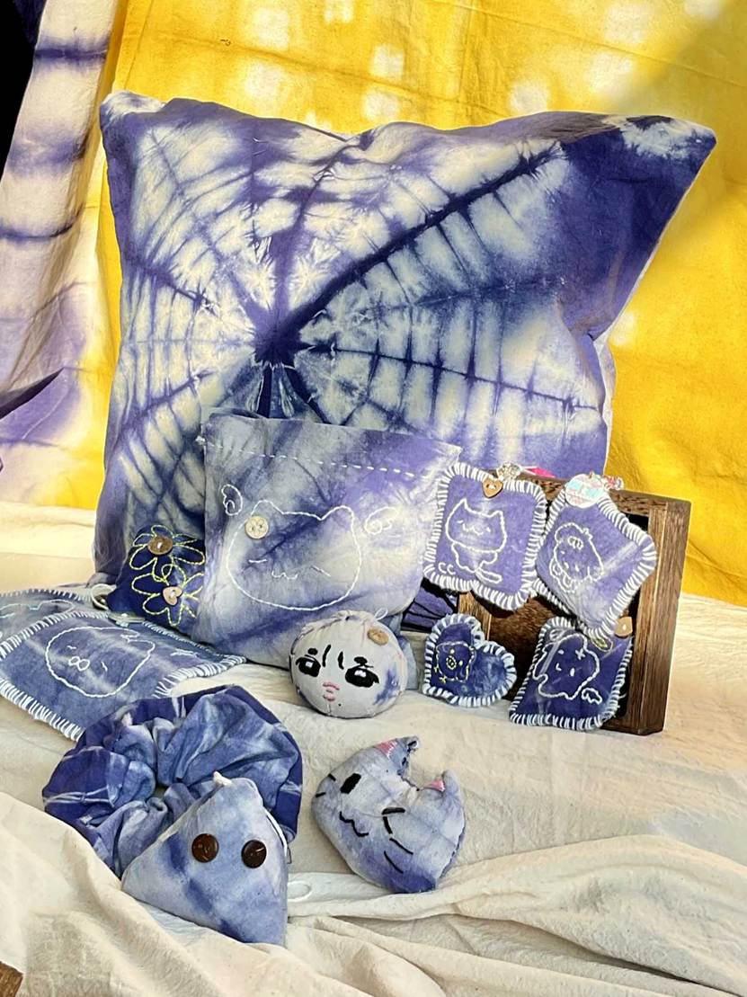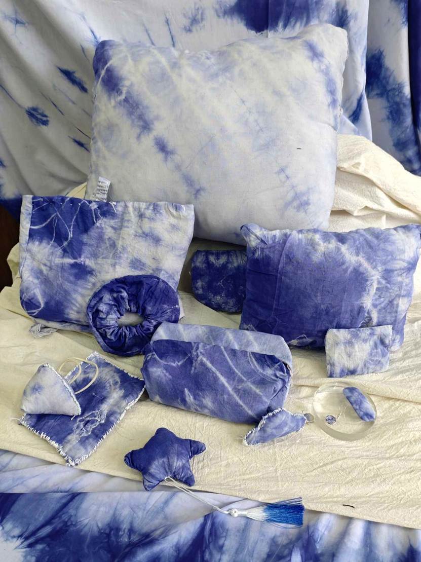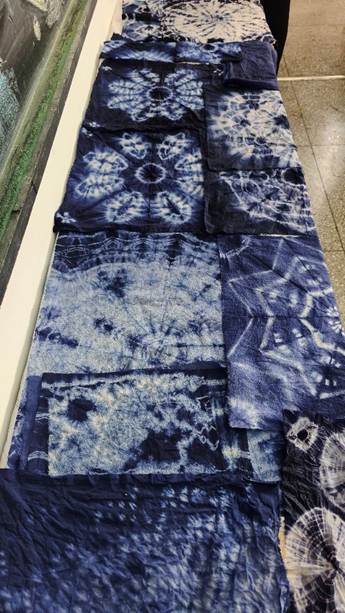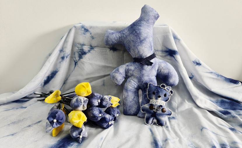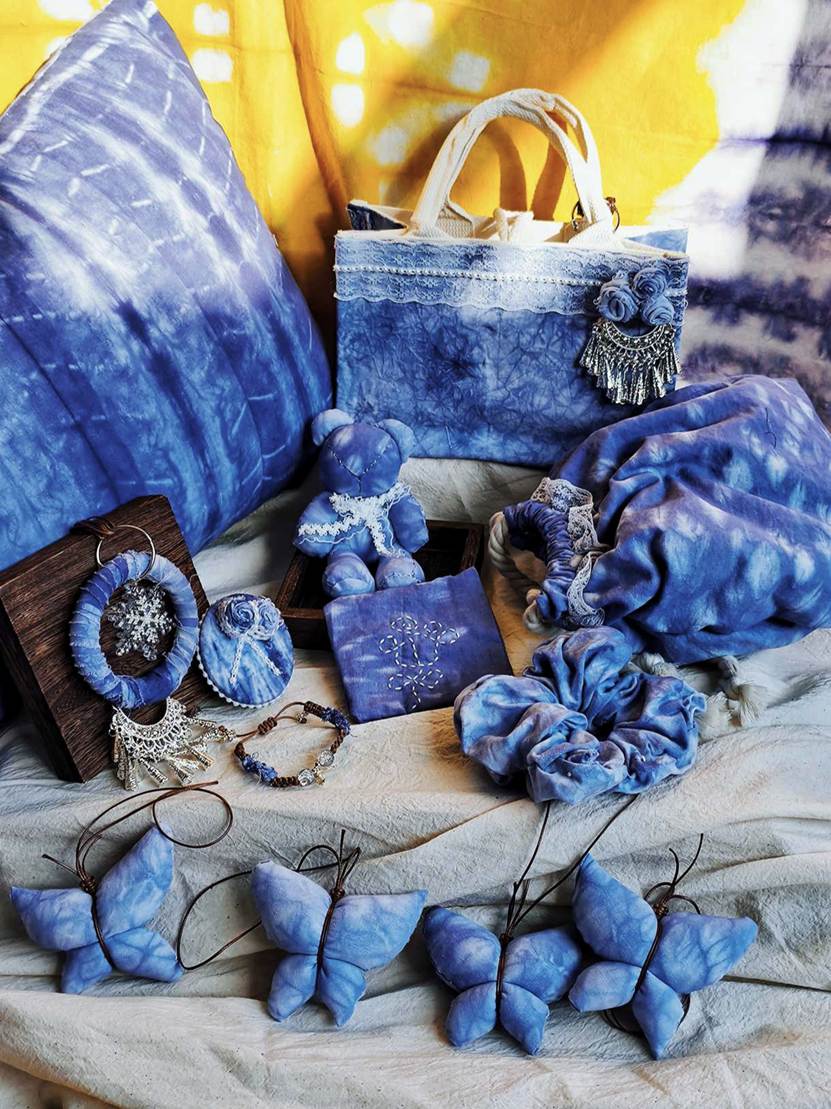 他们将几何图案、花草纹样等现代设计元素融入传统工艺,从布料折叠、棉线捆扎,到浸染上色、清洗晾干,每一个步骤都凝聚着专注与巧思。