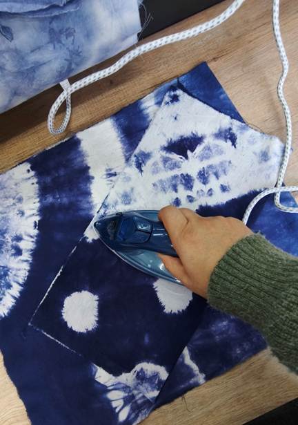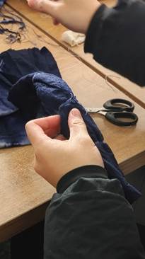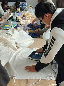 “作品晾晒与熨烫间,青春与匠心交织成美丽的色彩。”
